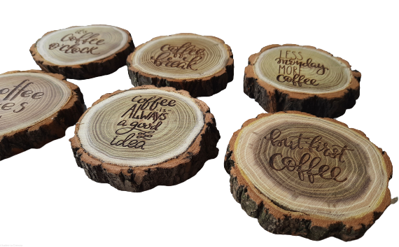 Plaster drewna Podstawka POD KAWĘ z grawerem AKACJA Prezent - RÓŻNE WZORY