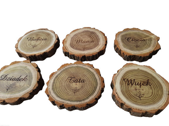 Plaster drewna Podstawka pod kubek z grawerem AKACJA Prezent - RÓŻNE WZORY