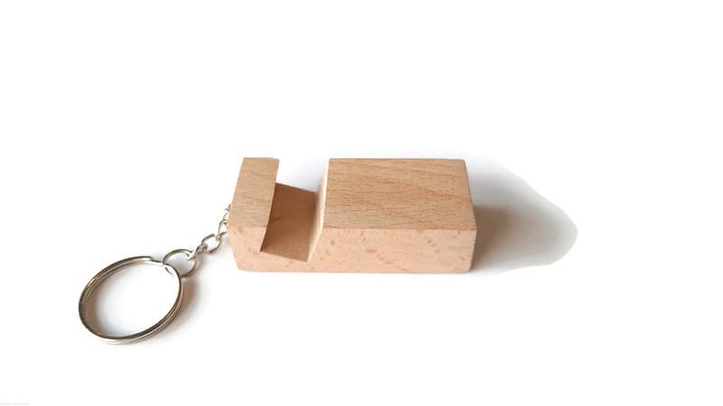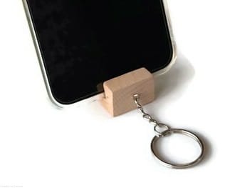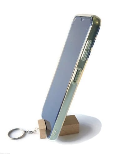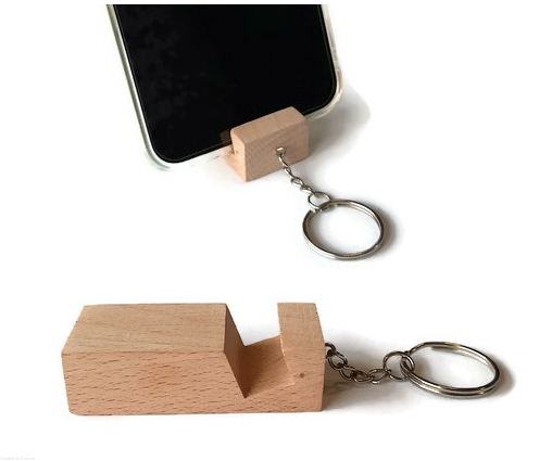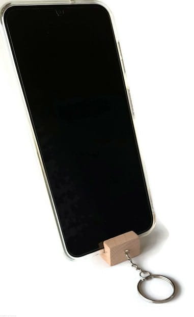 Telefon widoczny na zdjęciach nie jest przedmiotem sprzedaży, oferta dotyczy tylko drewnianego breloka.