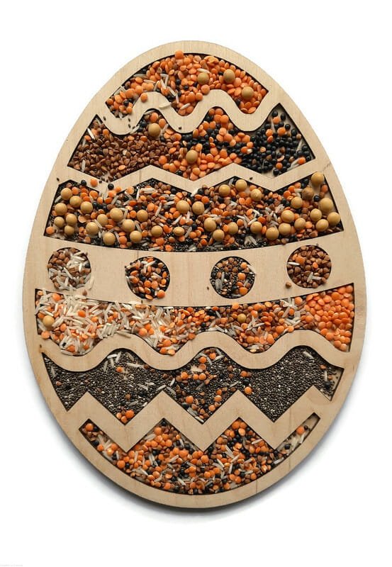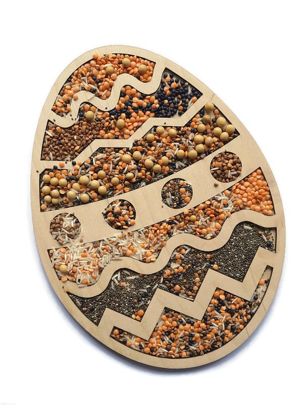 Wysypywanka sensoryczna w kształcie pisanki.