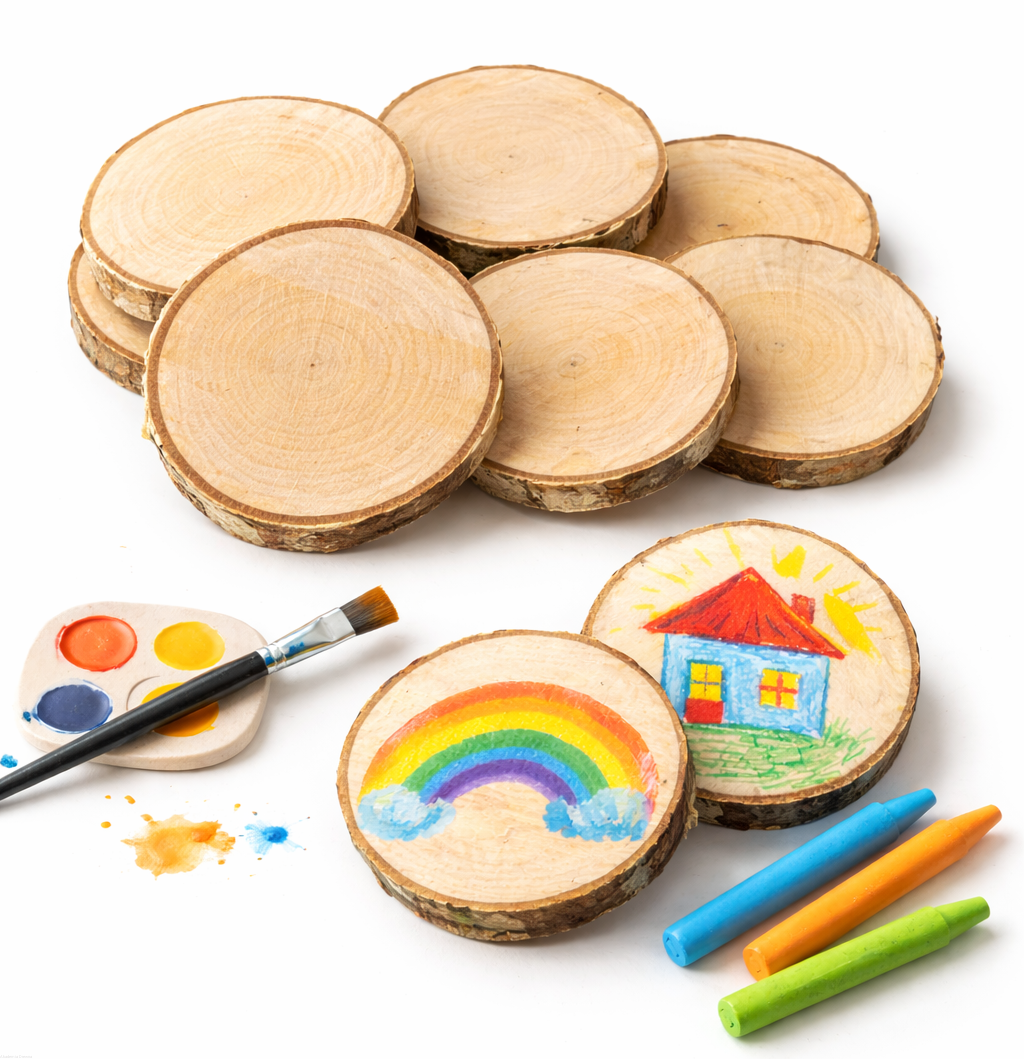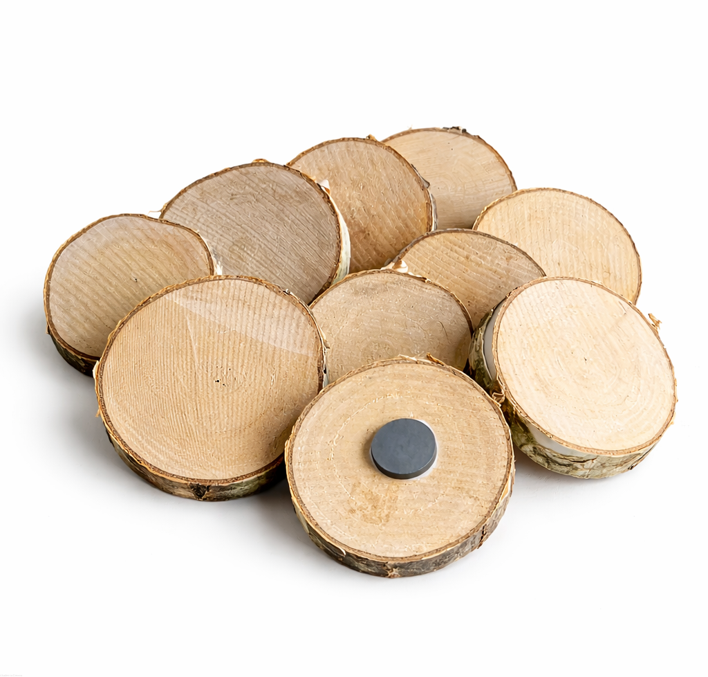 Zestaw 10 magnesów wykonanych z naturalnych plastrów brzozowych to idealna baza do kreatywnych prac plastycznych i zabaw DIY. Naturalna, nieszlifowana powierzchnia nadaje im rustykalny charakter i pozwala uzyskać ciekawy efekt w pracach dekoracyjnych.