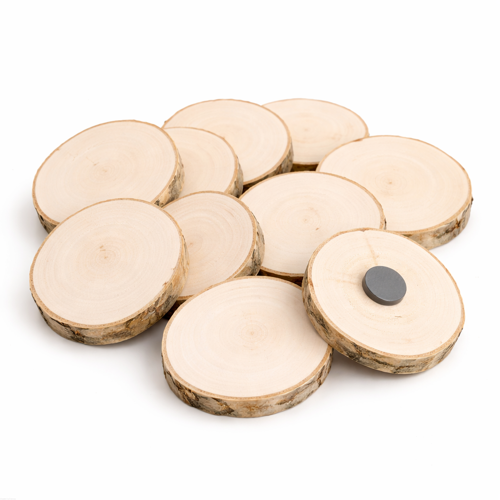 Zestaw 10 naturalnych magnesów wykonanych z plastrów brzozowych to doskonała baza do kreatywnych prac plastycznych i projektów DIY. Szlifowana, gładka powierzchnia ułatwia zdobienie i pozwala uzyskać estetyczne, precyzyjne efekty.