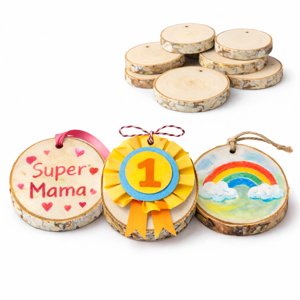 Naturalne plastry z drewna brzozowego to doskonała baza do kreatywnych projektów DIY.