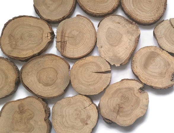 Plastry drewna dąb nieszlifowany 6-14 cm / 2 cm ZESTAW 50 szt - II gatunek