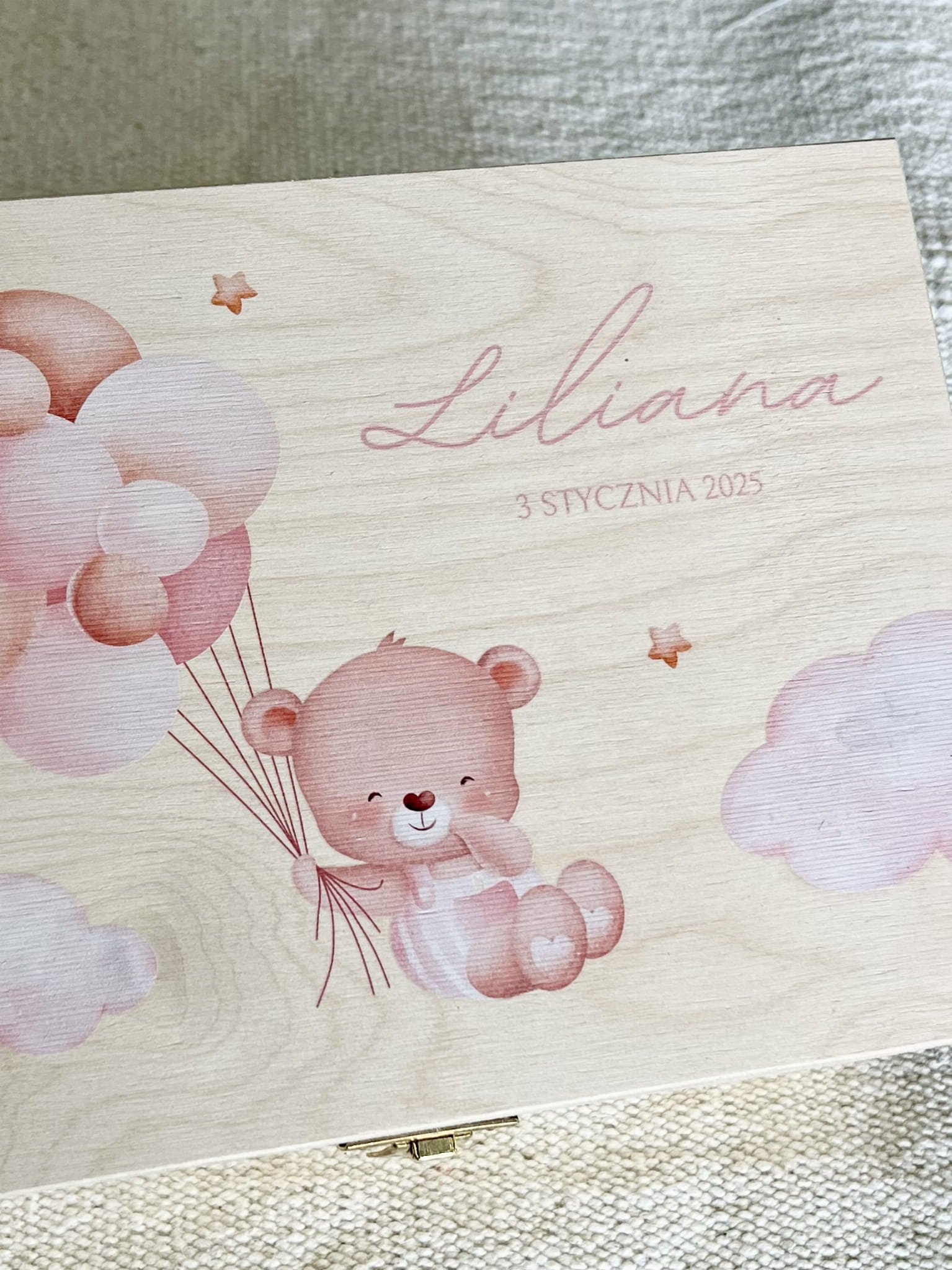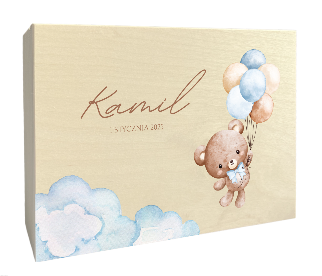 Pudełko drewniane BABY SHOWER nadruk UV 22x16 cm