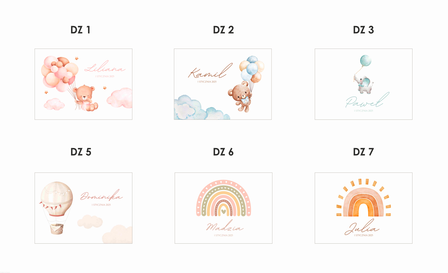 - dane do personalizacji: imię dziecka, data urodzenia.