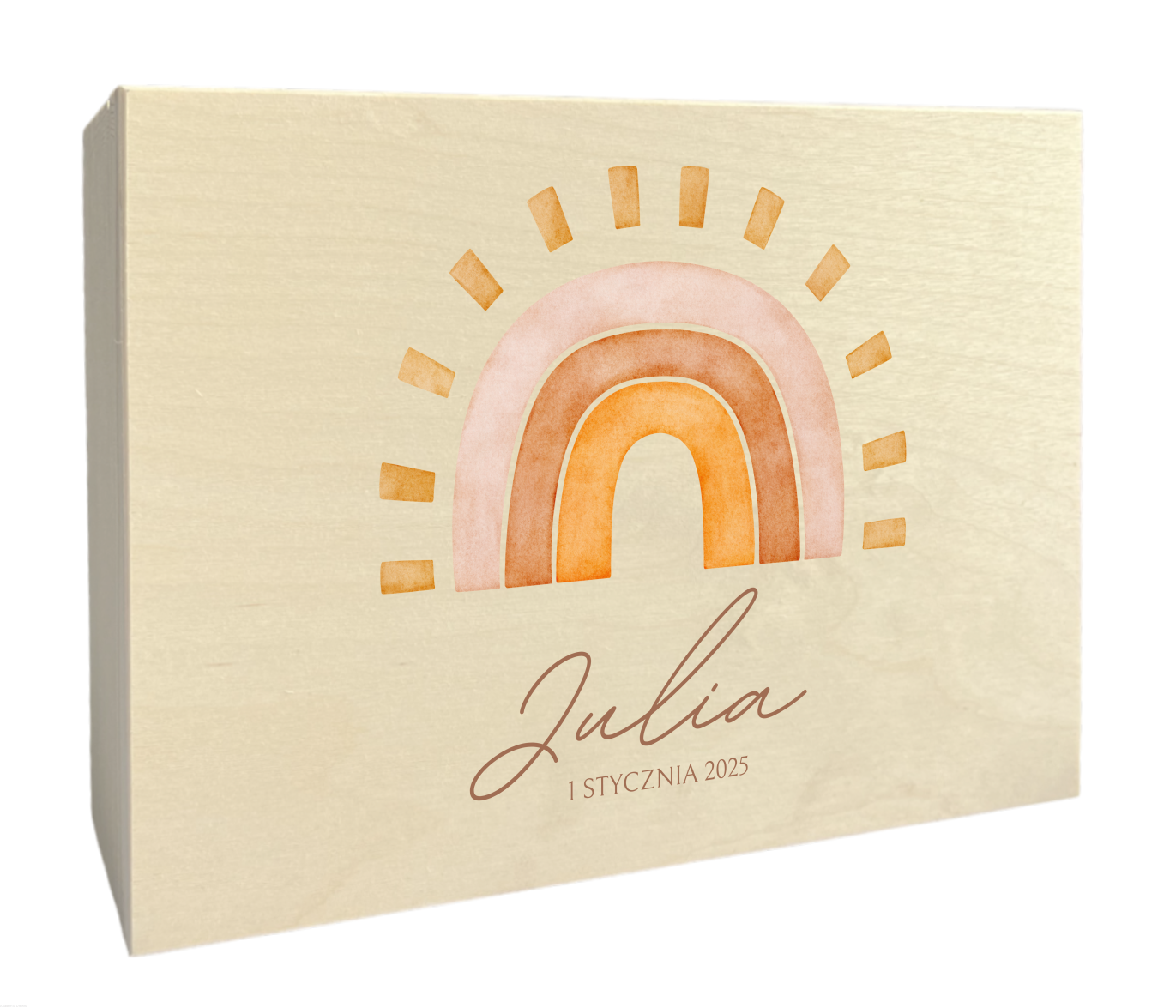Pudełko drewniane z kolorowym nadrukiem UV.