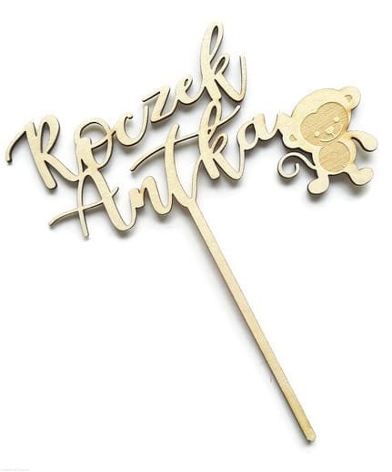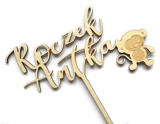 SAFARI "Roczek + imię" drewniany duży topper 20 cm