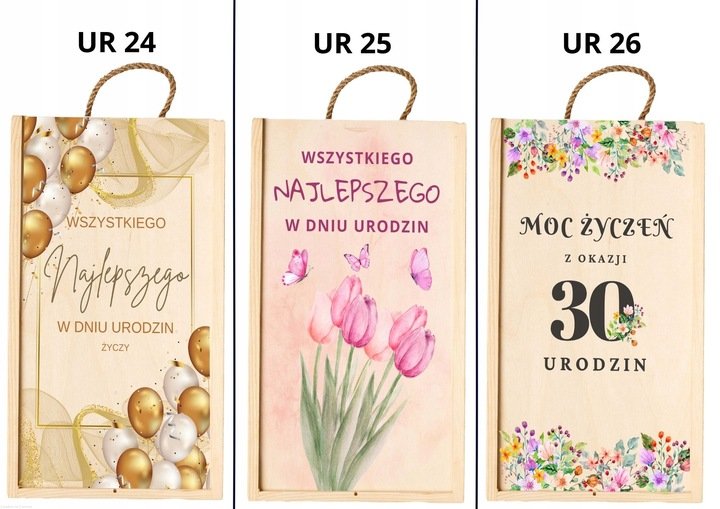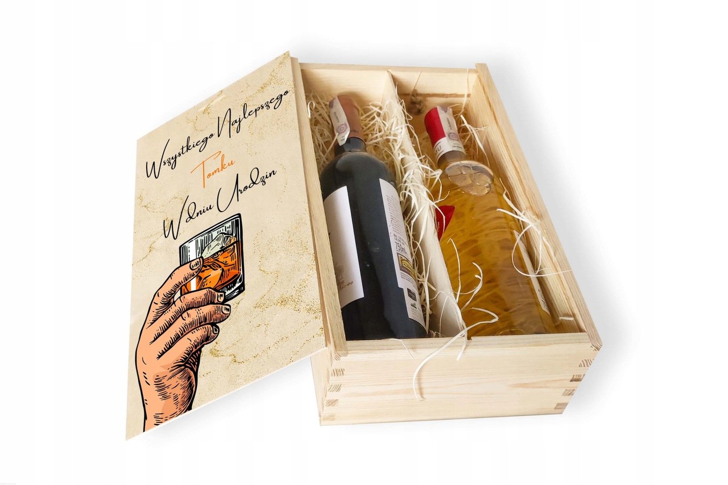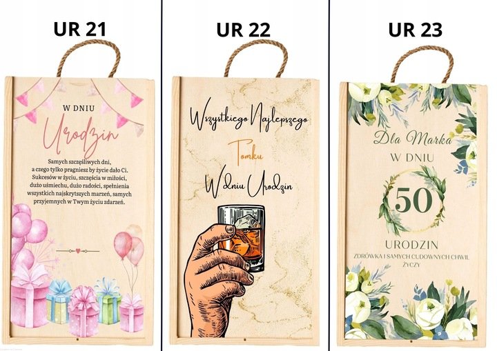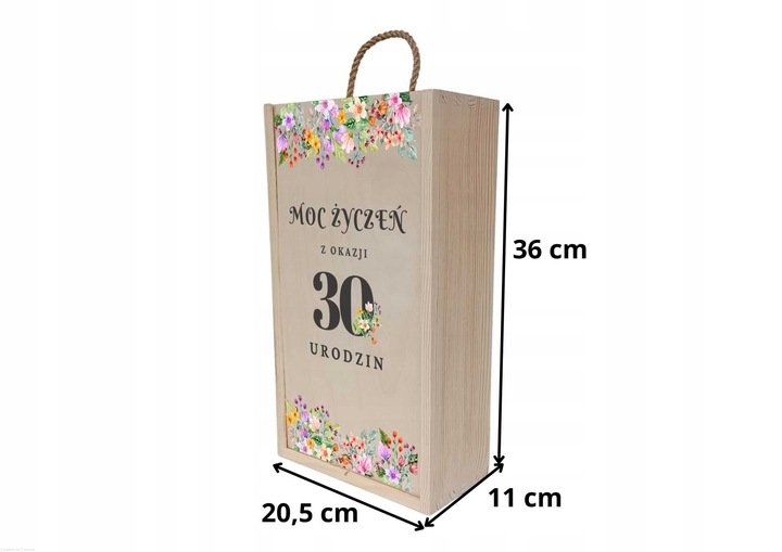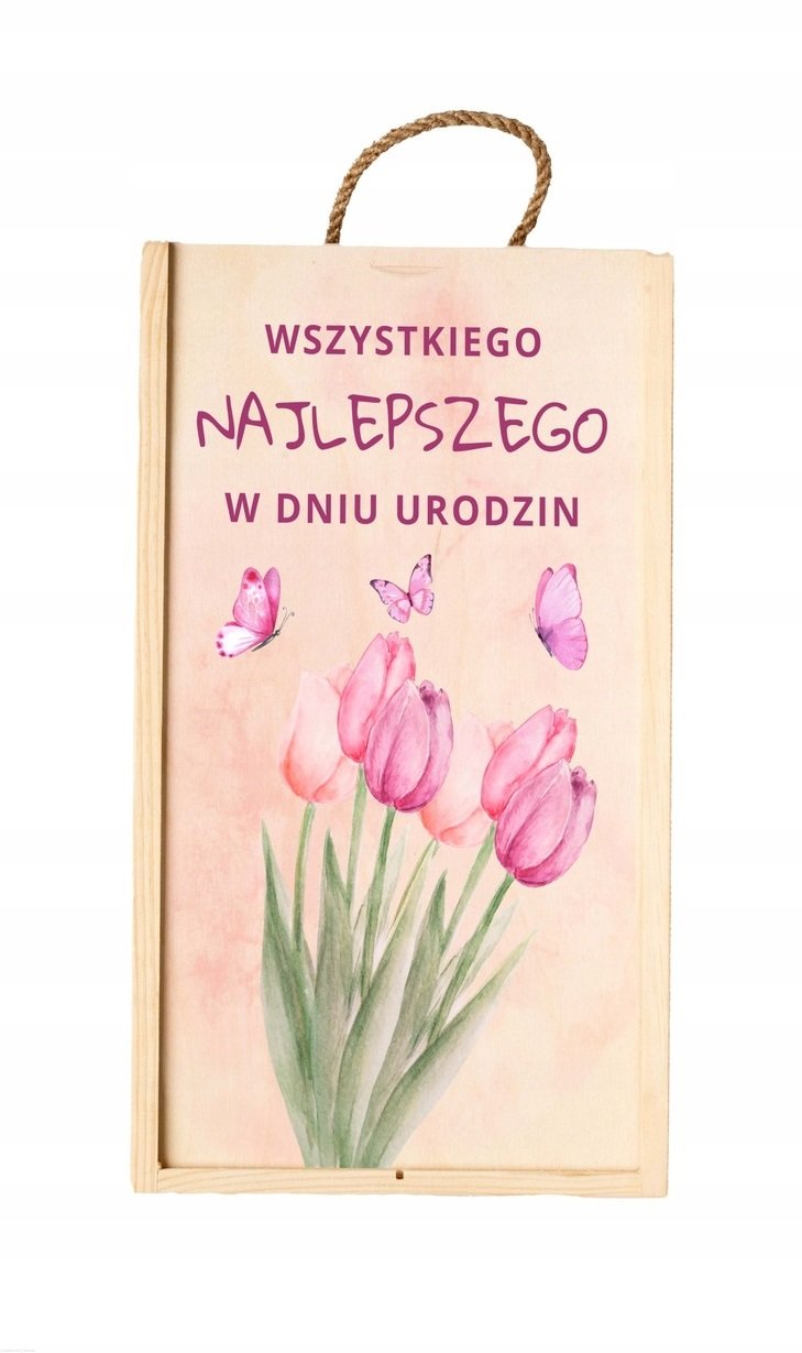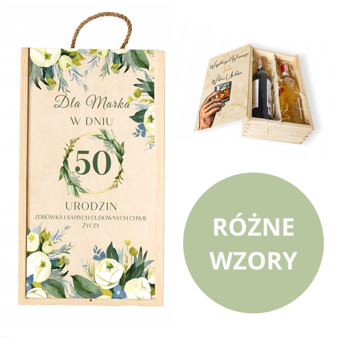 Skrzynka drewniana podwójna z NADRUKIEM UV na PREZENT urodziny wino alkohol miody