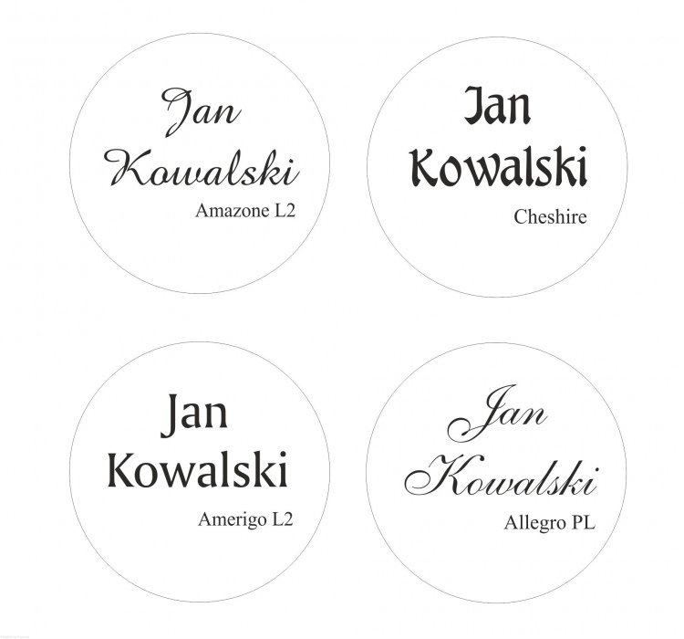 Do wyboru są cztery czcionki - w uwagach do zamówienia prosimy wpisać jaka czcionka została wybrana oraz co ma zostać wygrawerowane.