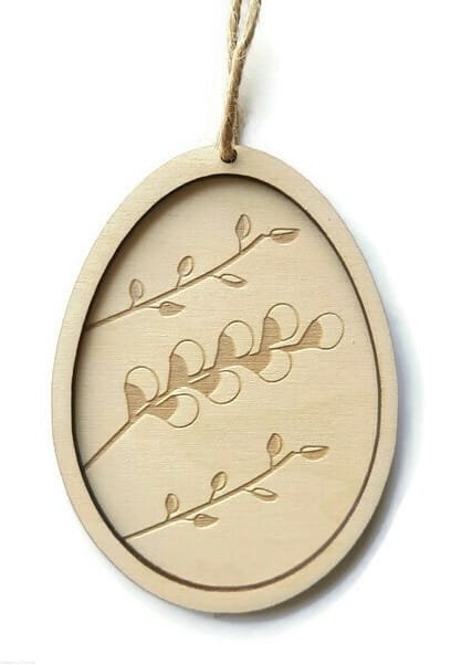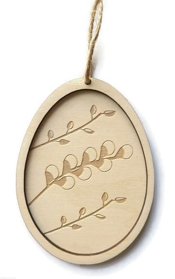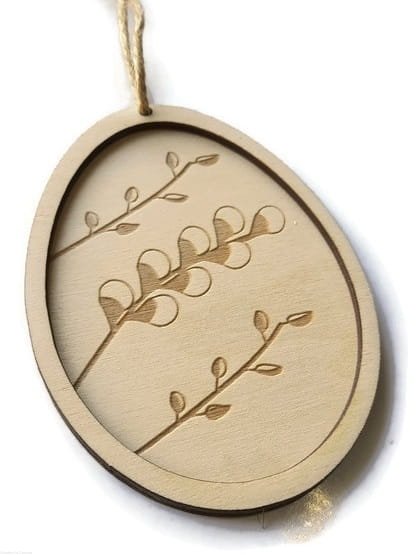 Drewniana zawieszka w kształcie pisanki.