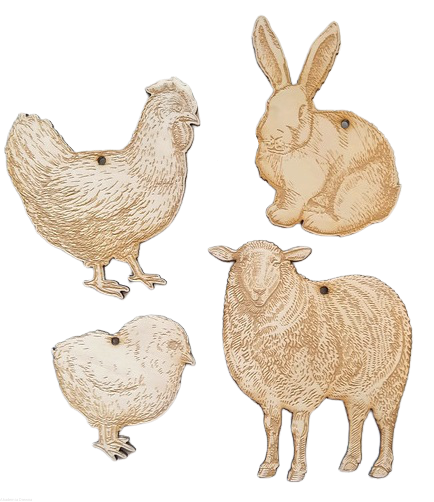 Komplet 4 sztuk drewnianych ozdób wielkanocnych.